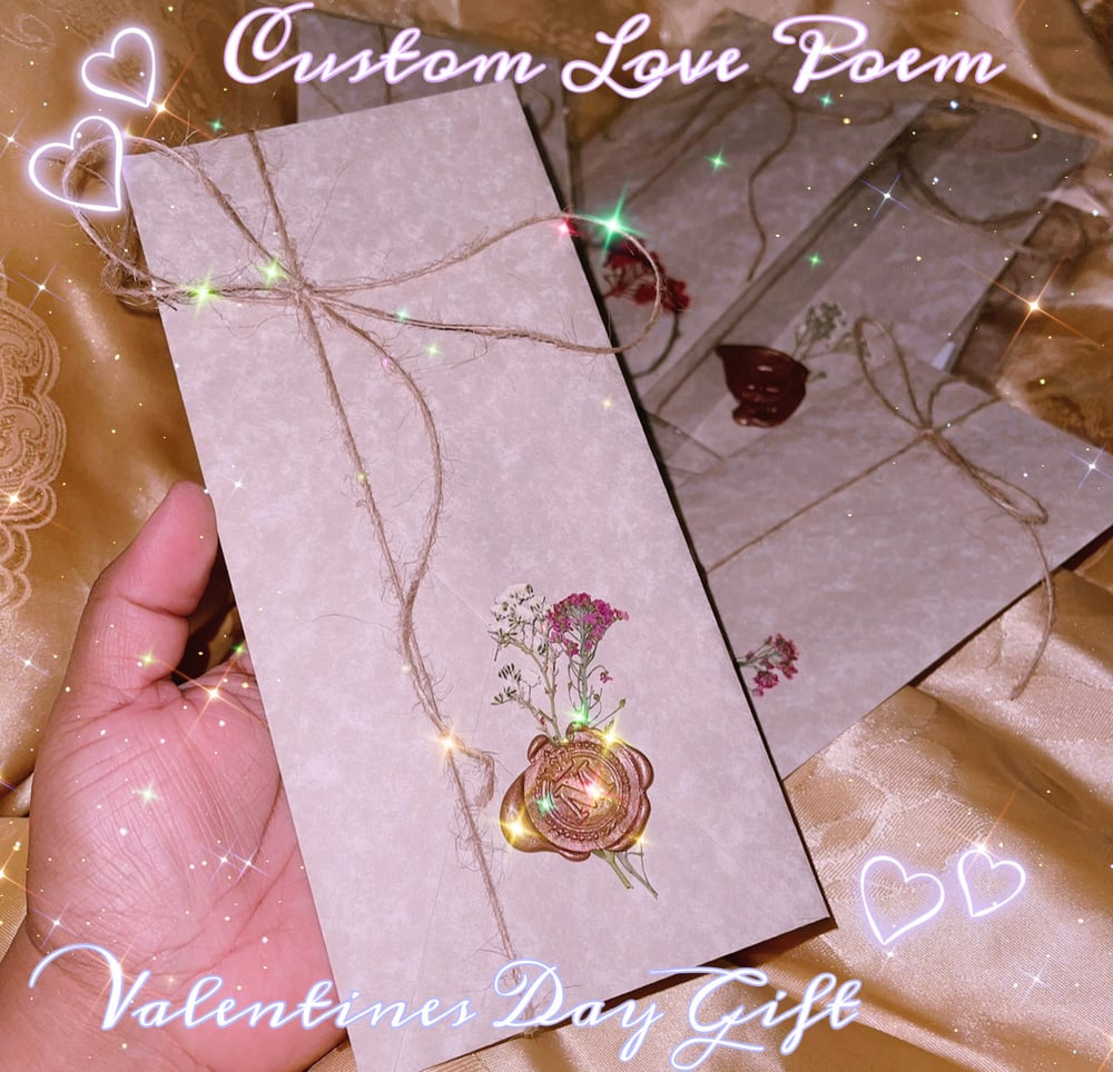 All poems are packaged in beautiful envelopes, sealed with luxury wax and dried aromatic flowers.